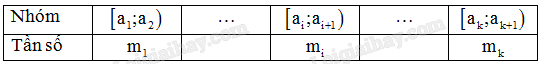 Bước 2: Trung vị là: \({M_e} = {a_j} + \frac{{\frac{n}{2} - \left( {{m_1} + ... + {m_{j - 1}}} \right)}}{{{m_j}}}\left( {{a_{j + 1}} - {a_j}} \right)\)
