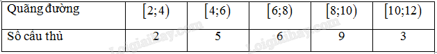 Quãng đường (km) các cầu thủ (không tính thủ môn) chạy trong một trận đấu bóng đá tại giải ngoại hạng Anh được cho trong bảng thống sau: