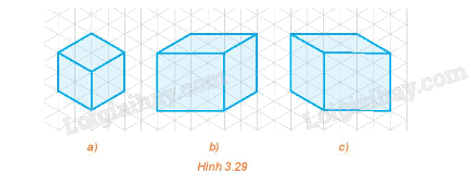 Hình 3.29b và 3.29c không phải là hình chiếu trục đo vuông góc đều của hình lập phương vì góc trục đo không cùng bằng 120°; hệ số biến dạng không cùng bằng 1 (chú ý đến độ dài các cạnh của hình chiếu).