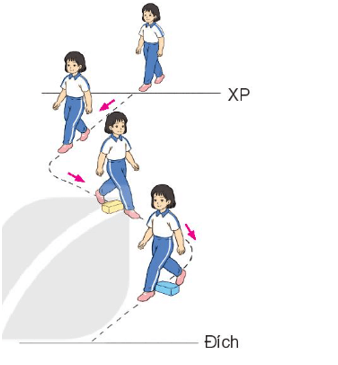 - Cách thực hiện: Từ vạch xuất phát, di chuyển theo địa hình. Khi gặp chướng ngại vật nhỏ thì bước qua, hai tay phối hợp tự nhiên, mắt nhìn đường đi.
