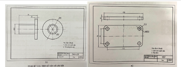 Hãy đọc các bản vẽ chi tiết ở Hình BT 3.6 và hoàn thiện bảng dưới đây.