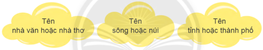 - Tên nhà văn hoặc nhà thơ: nhà thơ Ngọc Hà, nhà thơ Bảo Ngọc, nhà văn Văn Thành Lê, nhà văn Trần Hoài Dương,...