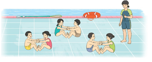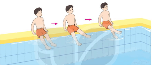 + Ngồi trên thành bể (hồ) bơi đập chân trong nước.