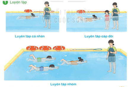 + Đạp thành bể (hồ) bơi tập đập chân di chuyển trong nước.