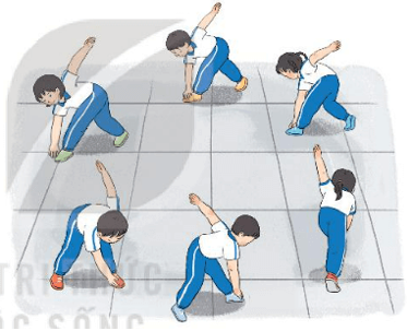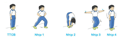 - Đứng tại chỗ cúi gập thân, vặn mình sang trái, sang phải.