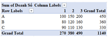 Qua ví dụ trên, có thể thấy rằng việc thay đổi vị trí kéo thả giữa ROWS và COLUMNS sẽ thay đổi cách tổ chức và hiển thị dữ liệu trong PivotTable, giúp người phân tích có các góc nhìn khác nhau về dữ liệu.