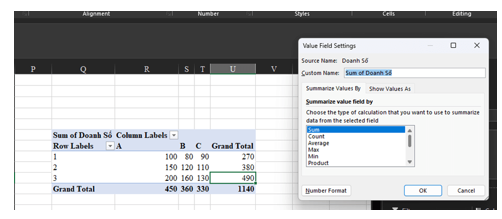 Những cách tóm tắt này cho phép tổng hợp và phân tích dữ liệu một cách nhanh chóng và hiệu quả trong PivotTable của Excel, tùy thuộc vào mục đích và yêu cầu phân tích của người phân tích dữ liệu.