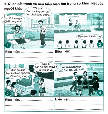 Quan sát tranh và nêu biểu hiện tôn trọng sự khác biệt của người khác.