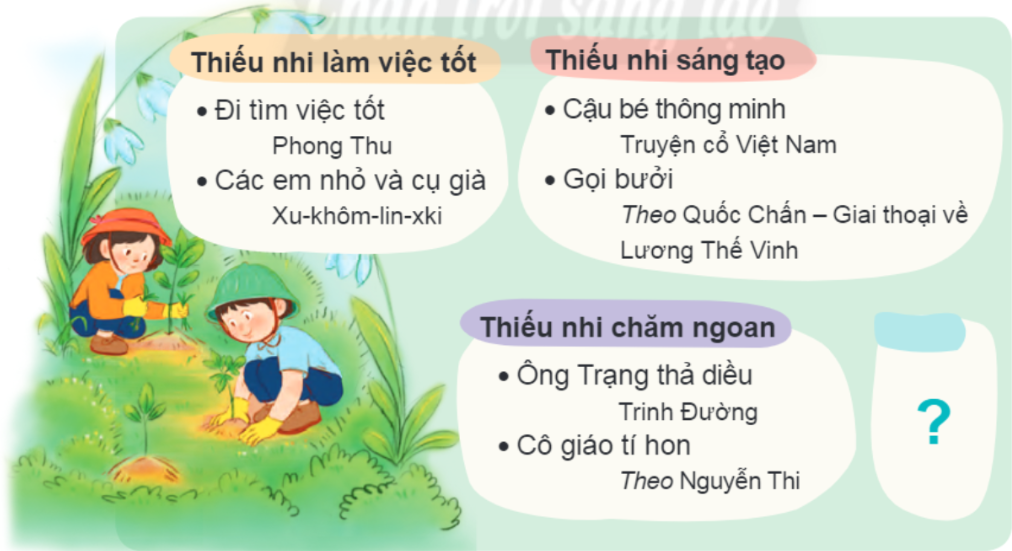 - Em thích nhất hình ảnh “Em biết thương bà, thương mẹ/ Yêu cô, yêu cả bầu trời”