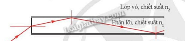 - Phản xạ toàn phần xảy ở mặt phân cách giữa lõi và vỏ làm cho ánh sáng truyền đi được theo sợi quang. Vì vậy, phần vỏ bọc cũng trong suốt, bằng thủy tinh có chiết suất n2 nhỏ hơn phần lõi.