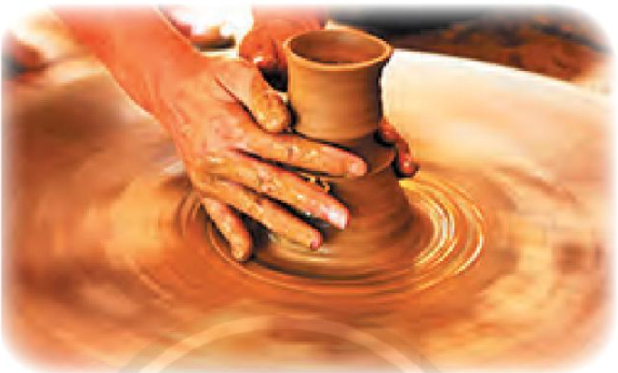 1. Người thợ đang làm gốm, tạo hình cho khối đất sét.