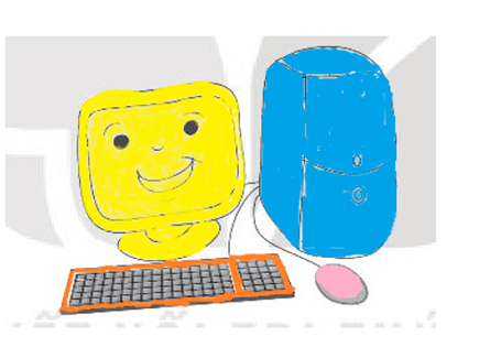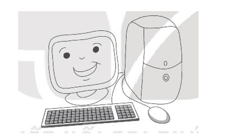 Hãy tô màu xanh lam cho thân máy, màu vàng cho màn hình, màu hồng cho chuột và màu cam cho bàn phím.
