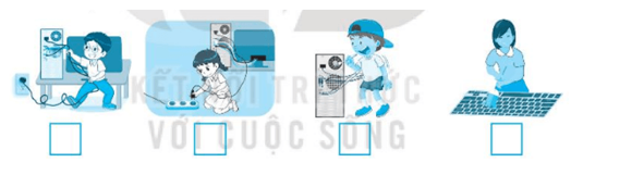 Việc không nên làm khi sử dụng thiết bị điện là gì? Đánh dấu ✔ vào ô trống trước đáp án đúng.
