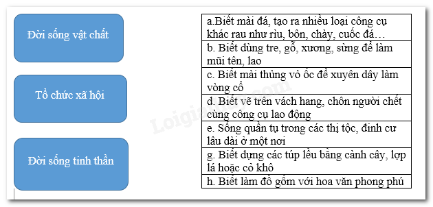 Hãy ghép nội dung ở cột bên trái với cột bên phải cho phù hợp với đời sống vật chất và tinh thần của người nguyên thủy trên đất Việt Nam.