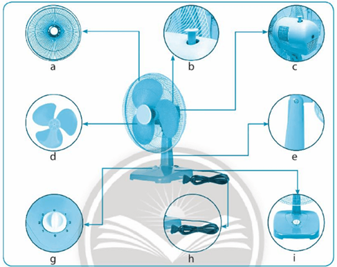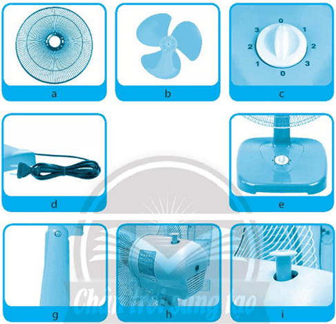 Em hãy quan sát chiếc quạt điện như trong hình ảnh dưới đây và điền tên các bộ phận chính của quạt điện vào bảng theo đúng thứ tự.