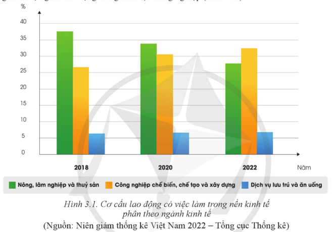 Quan sát Hình 3.1 và nhận xét sự chuyển dịch cơ cấu lao động trong nền kinh tế.