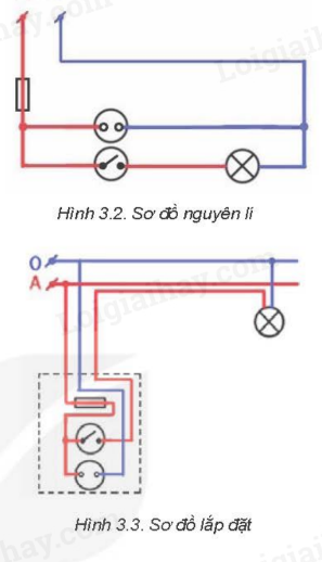 Chỉ ra sự khác biệt giữa sơ đồ lắp đặt trong Hình 3.3 và sơ đồ nguyên lí trong Hình 3.2