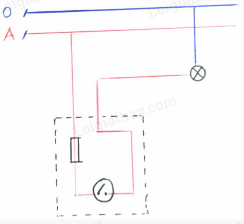 Sơ đồ mạch điện gồm 1 aptomat, 1 ổ điện, 1 công tắc hai cực điều khiển một đèn. Aptomat bảo vệ mạch điện. Công tắc được mắc nối tiếp với đèn và mắc song song với ổ điện.