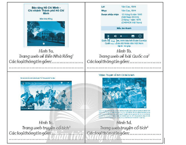 Điền vào chỗ chấm các loại thông tin có trong mỗi hình dưới đây.