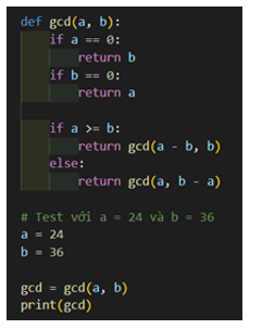 Thiết lập chương trình tính hàm gcd(a,b) - ƯCLN của các số nguyên không âm a, b theo thuật toán Euclid nhưng không đệ quy