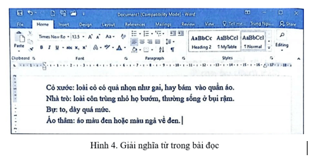 2) Gõ 4 dòng văn bản như Hình 4 để giải thích một số từ trong truyện “Dế mèn phiêu lưu kí” của nhà văn Tô Hoài:
