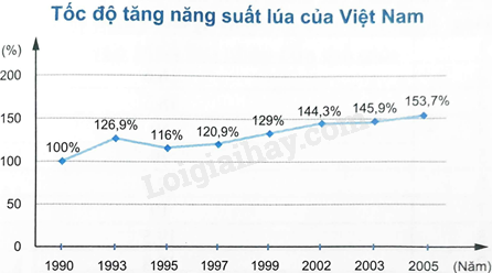 Tốc độ tăng năng suất lúa của Việt Nam qua một số năm tính từ năm 1990 được cho trong bảng thống kê sau: