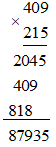 Đặt tính rồi tính: a) 409.215; b) 54 322:346; c) 123 257:404.