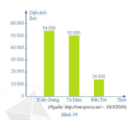 Biểu đồ ở Hình 19 cho biết diện tích lúa bị hại do xâm nhập mặn vào cuối năm 2015 và đầu năm của một số tỉnh. Tính tổng diện tích lúa bị hại của các tỉnh đó.