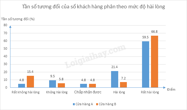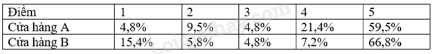 Do số lượng người đánh giá dành cho mỗi cửa hàng A, B là khác nhau nên ta không nên dựa vào số lượng người đánh giá để so sánh mà nên dựa vào tần số tương đối của từng điểm đánh giá ở từng cửa hàng.