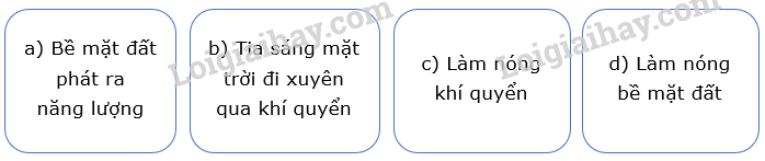 Hãy sắp xếp thứ tự các ý a, b, c, d cho đúng với quá trình nóng lên của khí quyển.