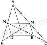 Cho tam giác ABC, hai đường trung tuyến BM và CN cắt nhau tại G \(\left( {M \in AC,N \in AB} \right)\). Gọi D, E lần lượt là trung điểm của GB, GC. Chứng minh: