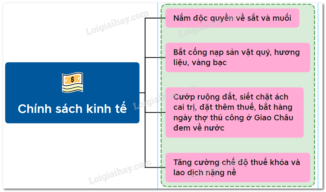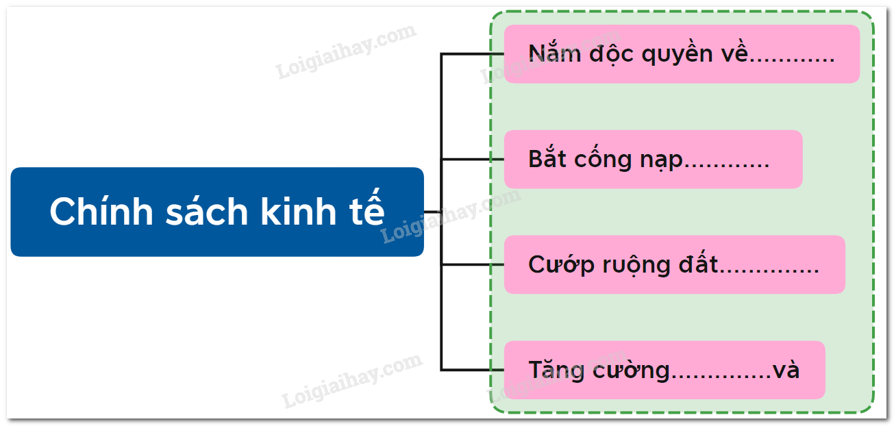 Em hãy điển vào chỗ trống những từ và cụm từ thể hiện chính sách bóc lột kinh tế của chính quyền phong kiến đô hộ phương Bắc đối với nước ta.