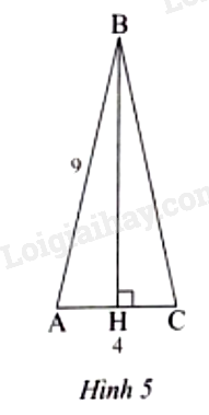 Tính chiều cao BH của tam giác ABC cân tại B (Hình 5), biết \(AB = 9cm\) và \(AC = 4cm\).
