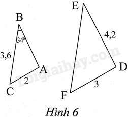 Trong Hình 6, cho biết $\Delta ABC\backsim \Delta DEF$