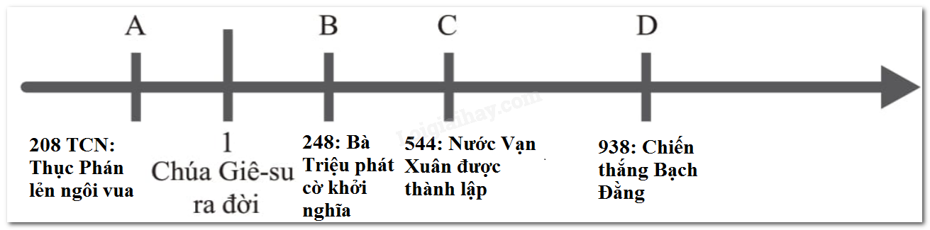 Hãy ghép các sự kiện dưới đây với các chữ cái trên trục thời gian theo đúng thứ tự trước sau.