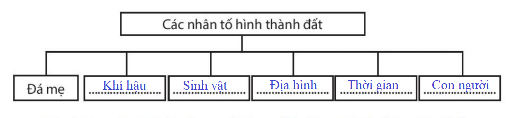 Dựa vào nội dung trong SGK, hãy điền các nhân tố hình thành đất còn thiếu vào bảng dưới đây: