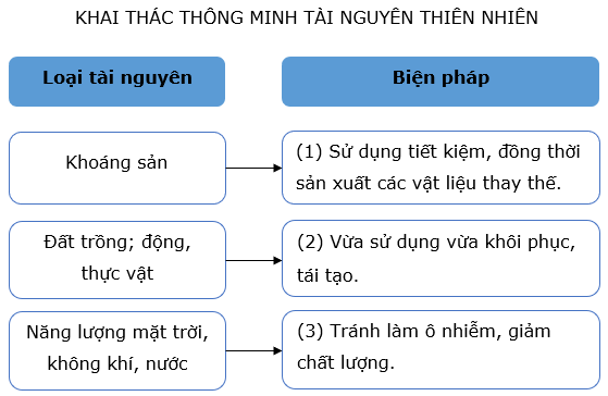 Dựa vào kiến thức đã học về khai thác thông minh tài nguyên thiên nhiên.