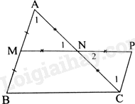 Tứ giác BMPC có: CP//BM, \(CP = BM\) nên tứ giác BMPC là hình bình hành. Do đó, MN//BC, \(MN = \frac{{BC}}{2}\).