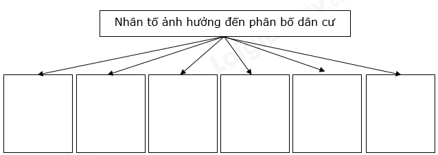 Dựa vào mục II, bài 22 trong SGK, em hãy hoàn thiện sơ đồ thể hiện các nhân tố chính ảnh hưởng đến phân bố dân cư.