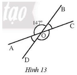 Vậy \(\widehat {BOC}\) = 33°,\(\widehat {COD}\) = 147° và \(\widehat {AOD}\) = 33°.