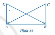 Cho Hình 44 có AC = BD, \(\widehat {ABC} = \widehat {BAD} = 90^\circ \). Chứng minh AD = BC.