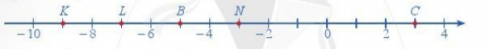 b) Vì điểm L biểu diễn số nguyên nằm giữa – 6 và – 8, mà – 7 là số nguyên duy nhất nằm giữa – 6 và – 8 nên điểm biểu diễn số - 7 là điểm L.
