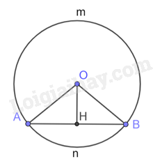 b) Chứng minh khoảng cách OH từ tâm O đến dây cung AB có độ dài bằng (frac{{AB}}{2}).