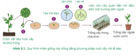 Câu hỏi: Quan sát Hình 3.1 và nêu quy trình nhân giống cây trồng bằng phương pháp nuôi cấy mô tế bào thực vật