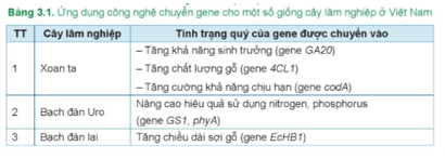 Luyện tập: Nêu những tính trạng quý của một số giống cây lâm nghiệp được chuyển gene trong Bảng 3.1. Theo em, những tính trạng này có ý nghĩa như thế nào đối với công tác phát triển rừng ở nước ta?