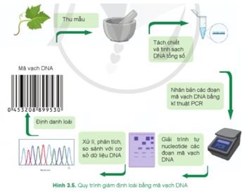 Luyện tập: Nêu quy trình giám định loài bằng mã vạch DNA được thể hiện ở Hình 3.5