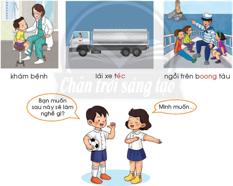 Đọc từ ngữ dưới mỗi bức tranh và hỏi đáp với bạn về ước mơ: