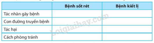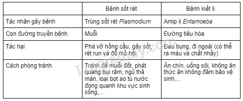 -Tìm hiểu về bệnh sốt rét và bệnh kiết lỵ trên sách, báo, internet,... (Học sinh tự hoàn thiện