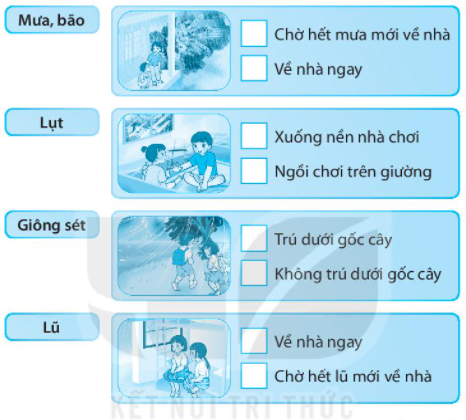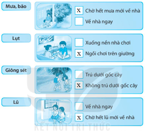 Đánh dấu X vào ô vuông trước cách ứng phó phù hợp với từng loại thiên tai.