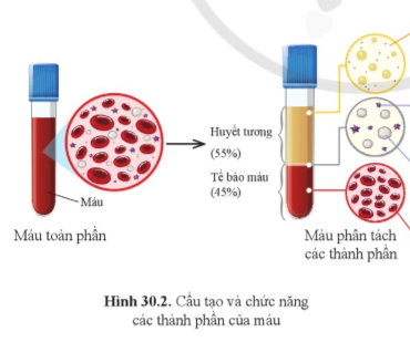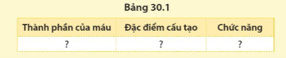 | Quan sát hình 30.2, nêu một số đặc điểm cấu tạo và chức năng của các thành phần máu theo gợi ý ở bảng 30.1 |